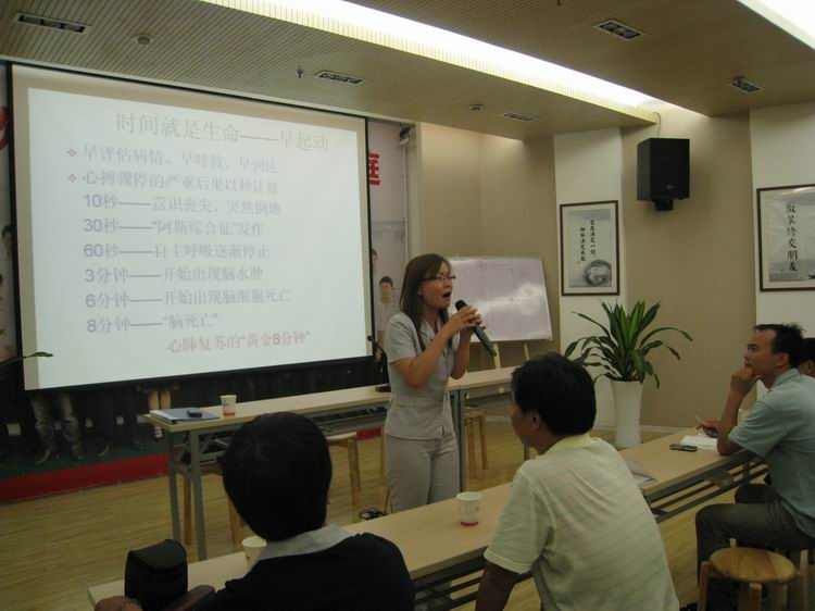 2009年8月18日,城东公司培训教室,进行了杭州区项目经理的急救知识培训。期间,负责培训的陈老师详尽而又认真地为在座的各位项目经理进行了有关紧急救护,疾病预防,以及日常保健的讲解,通过现场的演示和操作,与台下的项目经理互动。经过这次培训许多项目经理纷纷表示会将本次培训内容转述给工班和工人,同时也会加强对施工现场安全的管理,做到高高兴兴上班,平平安安回家。