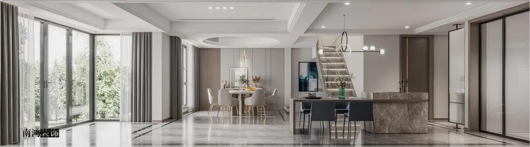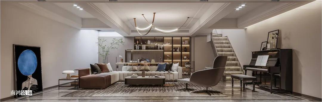 远洋雁归里是我们王冬萍老师的一套现代轻奢风格的别墅作品。轻奢风是一种格外优雅的生活基调,也是居者面对喧嚣世界时宁静从容生活态度的一种外现,高贵又有质感。